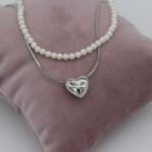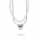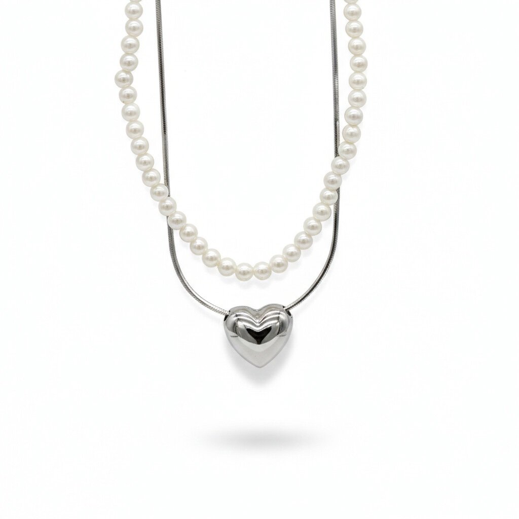 Bu özel set, klasik inci zarafeti ile modern metalik formları tek bir tasarımda buluşturuyor. Üstte yer alan tek sıra inci kolye, zamansız bir şıklık sunarken; altta yer alan yılan zincir üzerindeki üç boyutlu, dolgun kalp figürü tasarıma çağdaş ve iddialı bir dokunuş katıyor. İster birlikte kullanarak zengin bir “layering” (katmanlı) görünüm yakalayın, ister ayrı ayrı kullanarak sadeliğin tadını çıkarın.