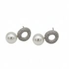 Gümüş renkli mikro pavé taşlarla bezeli halka formuna eşlik eden pürüzsüz inci detayı, yüzünüze anında aydınlık ve zarafet katar. Hem gündüz şıklığında hem de en özel gecelerinizde size eşlik edecek kadar çok yönlü.