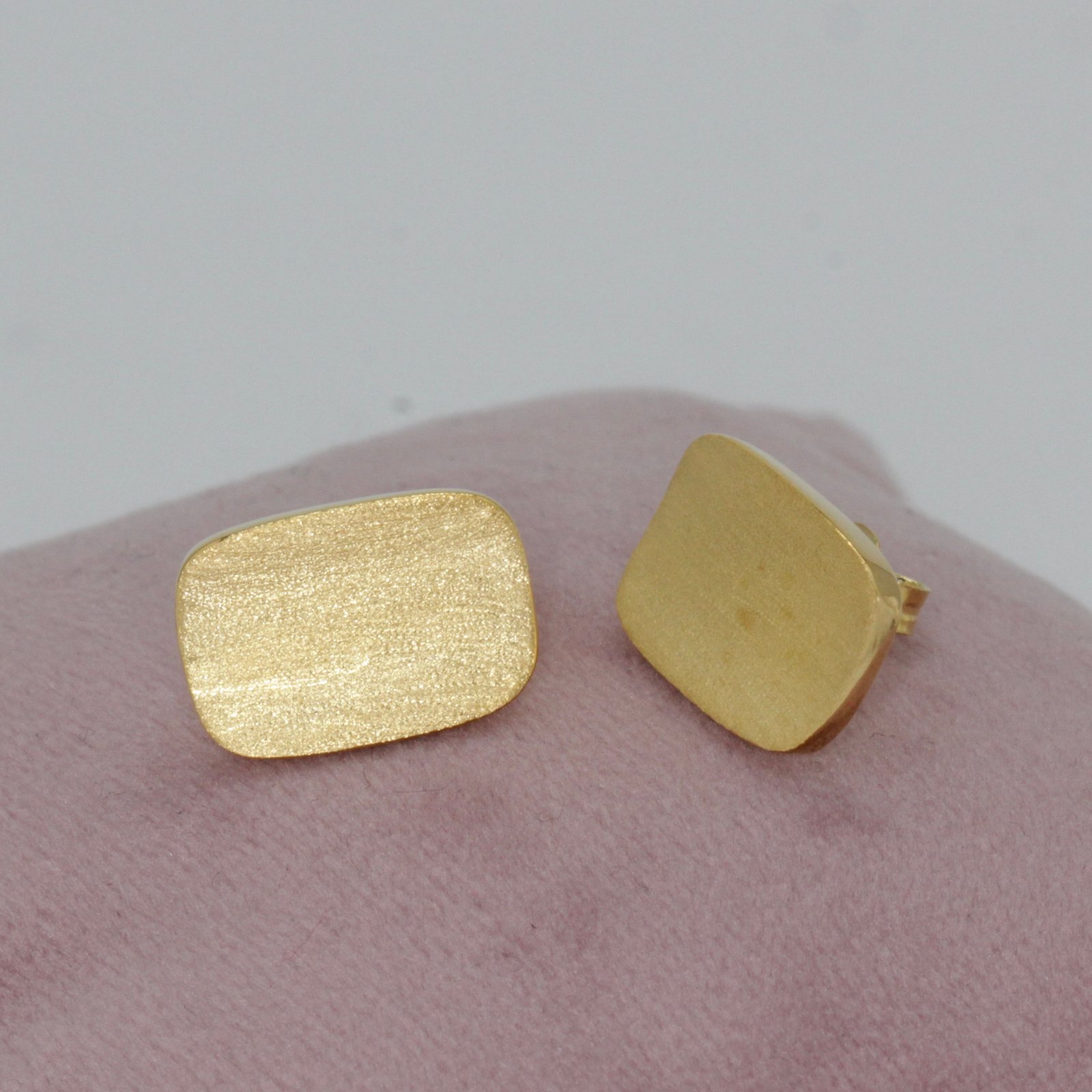 Sadelik ve şıklığı tek bir formda birleştiren bu küpeler, alışılmışın dışındaki dokusuyla stilinize sofistike bir imza atıyor. Geometrik formun keskinliği, sıcak altın tonu ve ipeksi mat yüzeyle mükemmel bir dengeye ulaşıyor.