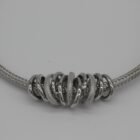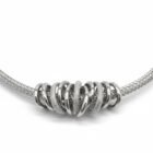 Geleneksel örgü tekniklerinin modern metal işçiliğiyle buluştuğu bu kolye, stilinde hem güç hem de zarafet arayanlar için tasarlandı. Kalın ve esnek gümüş tonlu hasır zincir, merkezde yer alan iç içe geçmiş çoklu halka detaylarıyla zenginleştirilmiştir. Bazı halkaların pürüzsüz parlaklığı ile diğerlerinin mikro dokulu (noktalı) yapısı arasındaki kontrast, tasarıma derinlik ve yüksek bir kalite algısı katıyor.